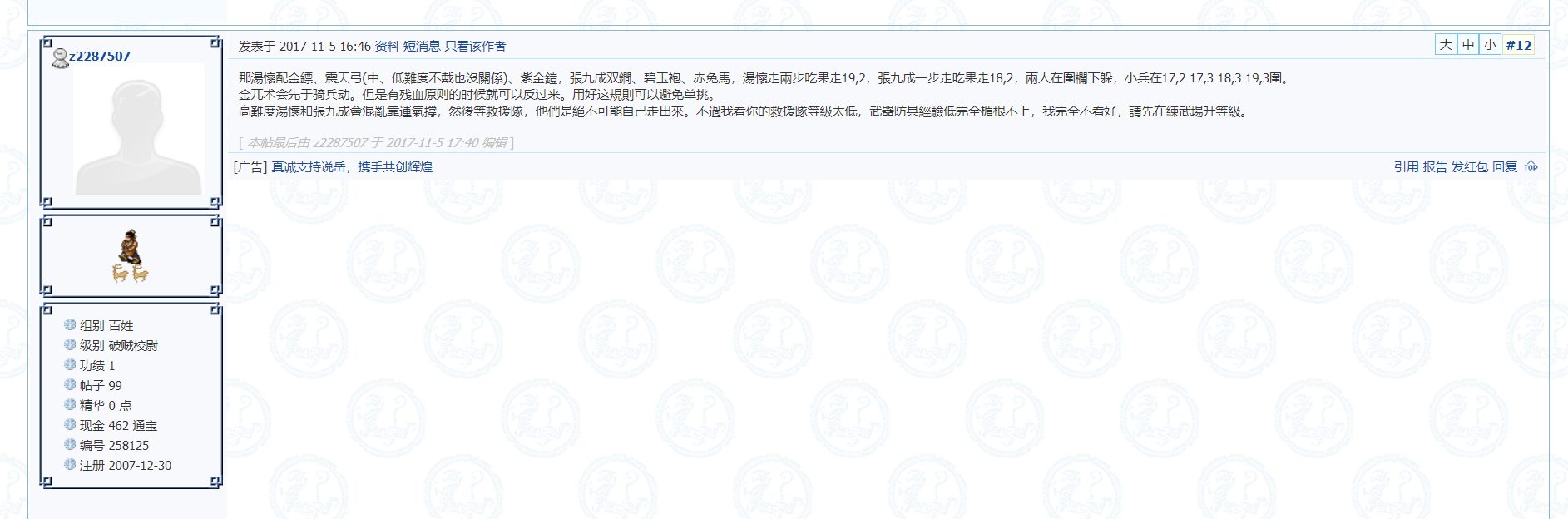 汤怀装备是8级震天弓,接近8级的紫金铠,金镖;张九成装备的是双锏和杏黄旗,防具随便,毕竟我这个等级低...