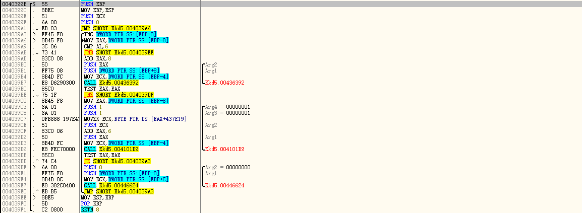 00405B8B |. FF75 E0 |PUSH DWORD PTR SS:[EBP-20] ; |Arg2