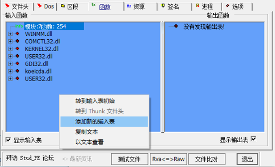 将该文件放置到游戏目录中,然后打开Stud_PE,用该软件打开ekd5.exe,来到【函数】一栏: