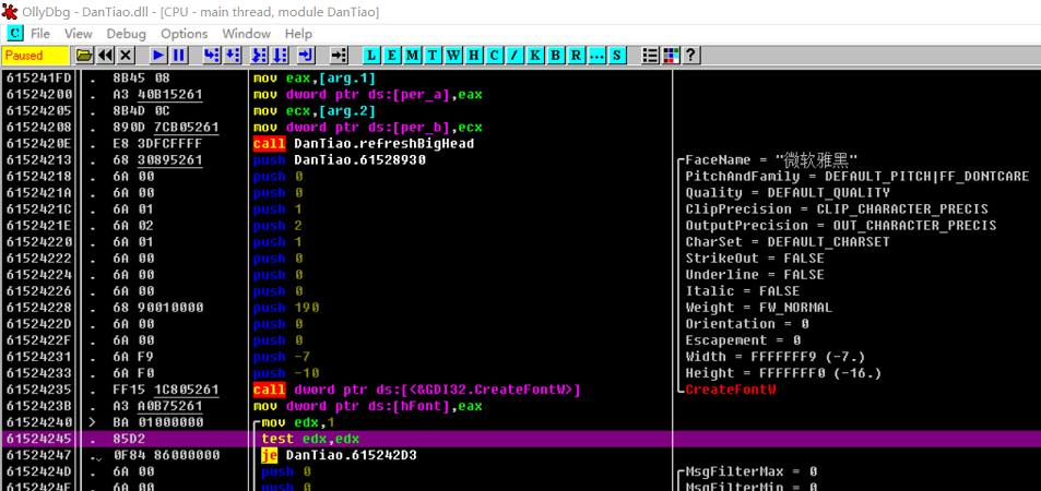 加入成功后,在左侧可以看到DanTiao.dll,我们展开这一项,可以看到下图中箭头处有个数字,该数字+400000H称作