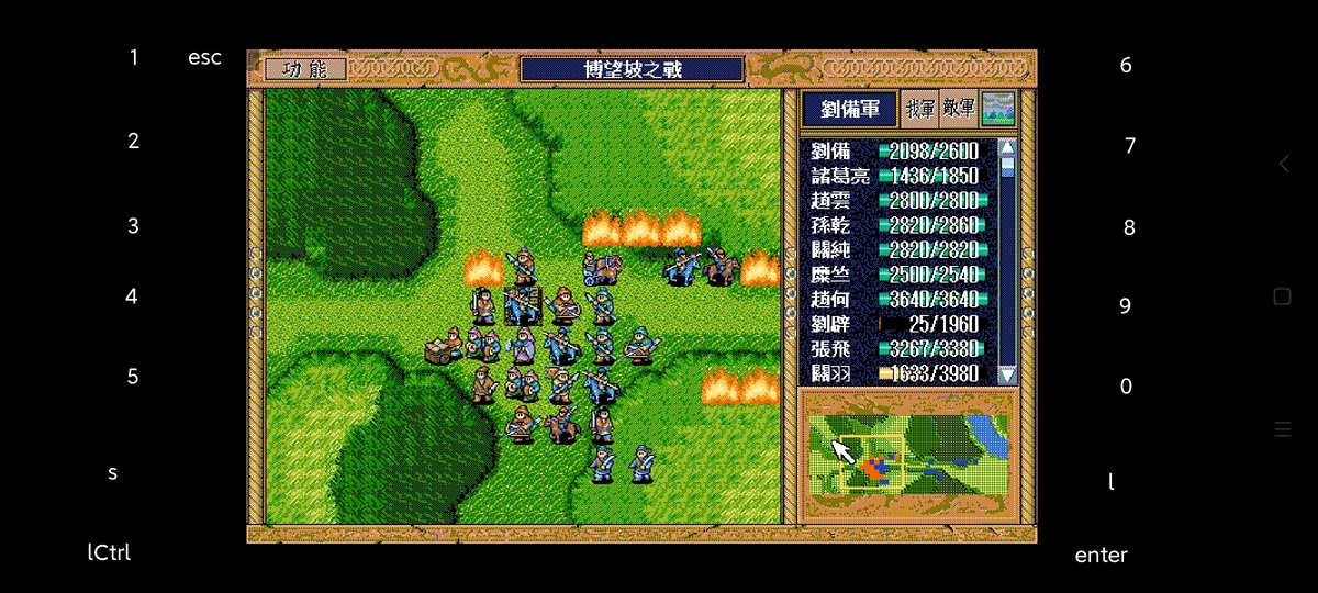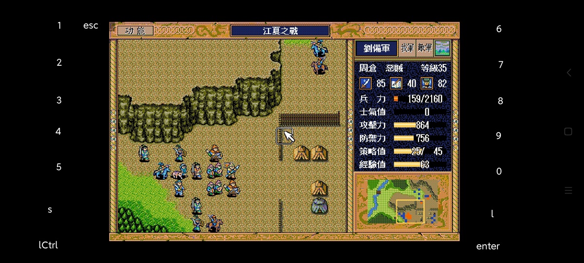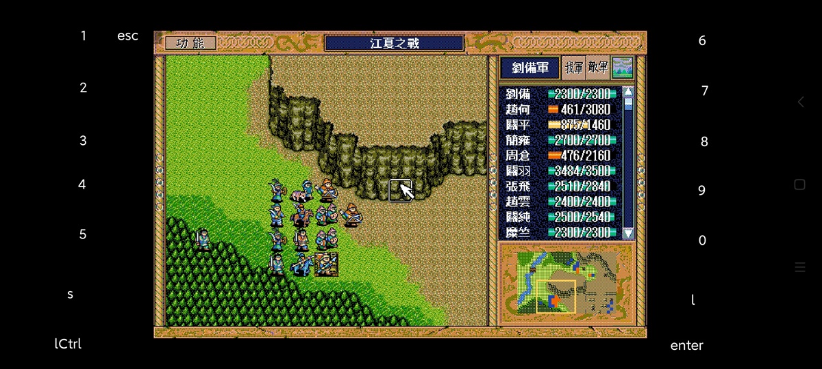 5回合初上路图,4回合关退回激励自己给云援助,何上去牵制并反击,能两次都反最好(重要,影响贼兵走位也节省贼兵策略),但是要4回合也雨天武术才会攻何,好不容易雨天了何还不反击,太难,最后我只反击了异民族。