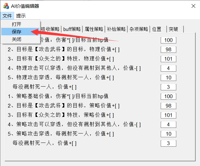 而ai移动到该格子的最终价值,由[物理攻击价值 和 策略价值的最大值] + 位置价值得到。