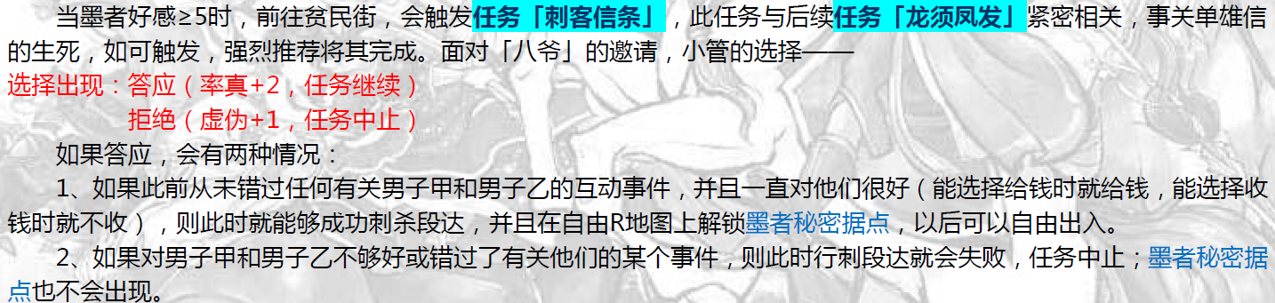 根据攻略的说法,如果没有错过双龙的剧情,就能成功刺杀段达,墨者据点就会出现。我的剧情里,段达确实死了(有图为证),却没出据点。我不明白,请教这是怎么回事,我到底是缺少了什么条件?