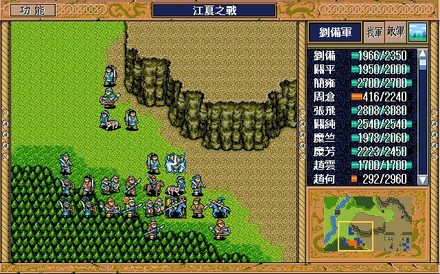 此时我方还有赤兔马、5把武器、剑术指南书、弓术指南书、长枪共9个道具,加上新买的66个道具,空位绰绰有余,只要刘备、赵云身上不带满道具即可。