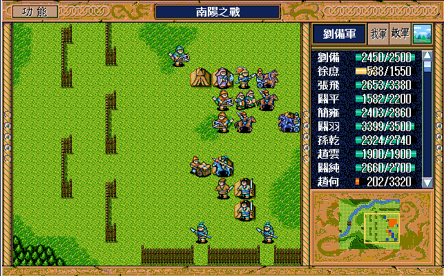 博望坡比江夏的难度确实不遑多让,在定下了周仓多拿反击的基调后,与第三季的情况类似,真正的考验来自于繁杂的计算量——敌军封印期的混乱如何安排,何时清醒,如何用策略,兵力、士气怎样控制等等;敌军策略值、兵力、士气等的前后关联相当大,期间还有韩浩早升级与晚升级的变数。熬了大半个月,处处是坑,坑坑不同,反复填坑的同时还要经历一遍又一遍的S/L难点,总算是接近尾声了。先预告一下:在周仓高3级而且被主要照顾的情况下,总反击量比第三季又提升了12次;诸葛亮一出道就要开始漫漫“委屈”之路了;另外南阳9回合要改晴天,让李典的假情报换成火龙,少拿8点经验。现在还有少许不影响大局、但能锦上添花的工作完成了,就会贴出从未有过的赵云变军乐下的另类博望坡,先发几张图吧。