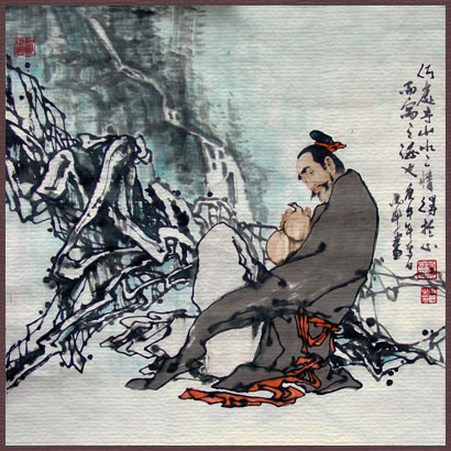 国画的颜色和宣纸结合总有些“灰”,特别是大面积的渲染,所以常用一些鲜艳的颜色或小面积的对比色。
