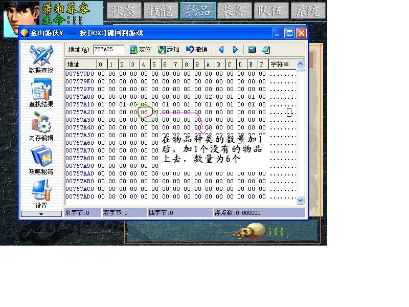 可以找到地址,但是改了数量怎么也改不出来,也就是说自己没有的东西,怎么也改不出来
