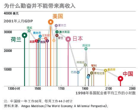 众多廉价劳动力的勤奋工作,可以在经济增长初期弥补制度资本的不足,这是中国经济近二十几年高速增长的重要原因。但是有关统计表明,越勤劳的国家,人均GDP反而越低。