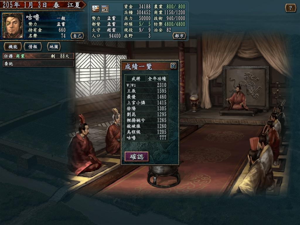 后来我军夺下了吴~~经过一连窜战争~~我发现我统治的建邺已经成为本势力最强大的都市~~~看看老大的本城吧 兵力都不到3万~~残念