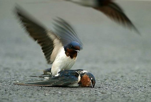 另一只家燕,仿佛是他的家人,马上飞到了她身边,不愿相信这个事实。