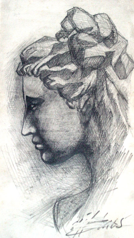 罗丹有个雕塑作品,我就是仿这个的,找了张表格背面就画了,真是因陋就简。当时很满意,现在看真别扭!