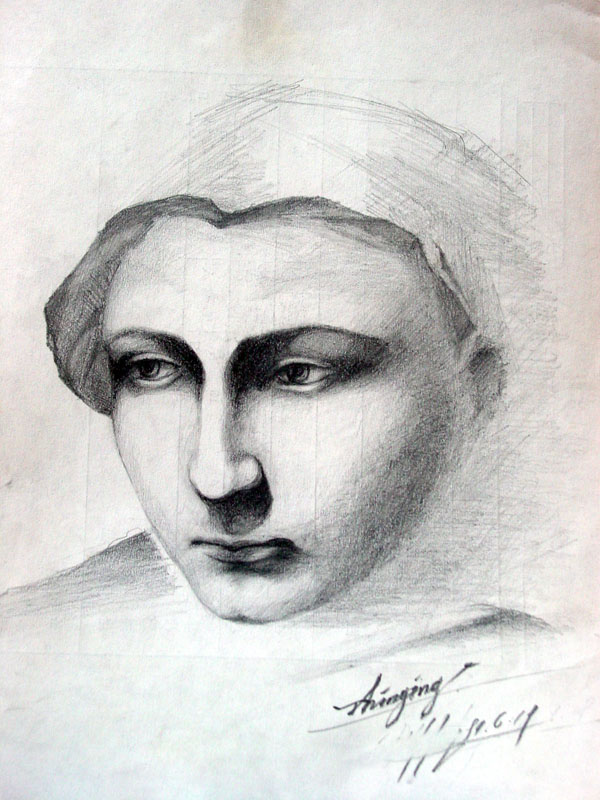 那时还没系统学过素描,摸索着就这么画了,现在看来有很多违反画理的地方。