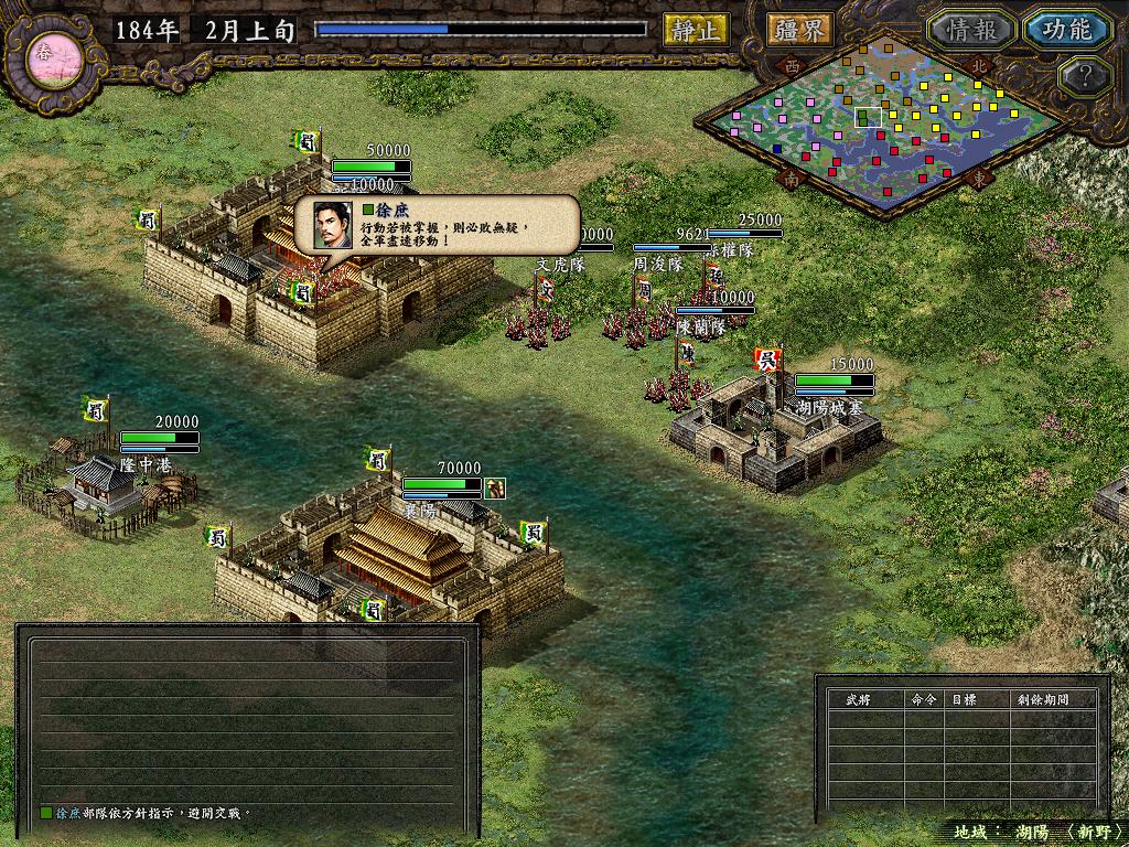 没注意看,你弃新野的打法会轻松一些的,襄阳保持6~7W兵马敌人城塞中的暂时不会打你,开始只有靠近的几个城市会出兵,把你的强将放在几个城塞,应该能撑的过去.记得襄阳的兵力要保持,要不敌人全部一起出兵就死翘翘了~~