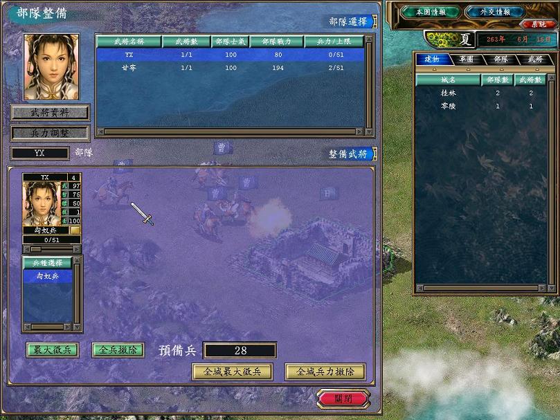 侦察了一下,哦?零陵也只有3个武将啊!好,继续征战!所谓以战养战!这些边远地区,