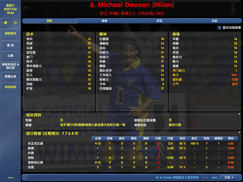 这个……应该怎么拼啊~~不懂,哪位大哥帮下忙,帮我拼一下~~不错哦~~刚提拔到一线队时,盯人才14,打了一年,猛起来了~~能力嗷嗷上涨啊~