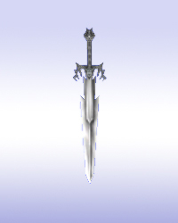 此剑用白金、龙铁精炼而成,顶端圆滑,刃走圆弧,锋利无比,光可照人。剑身镶嵌龙睛宝石,夜间可持剑而行,三丈之内亮如白昼。相传此剑为晋朝勇士周处杀死水中蛟龙后,龙身化铁,经名匠反复锻打,精作而成。(周处:见《晋书·周处传》)