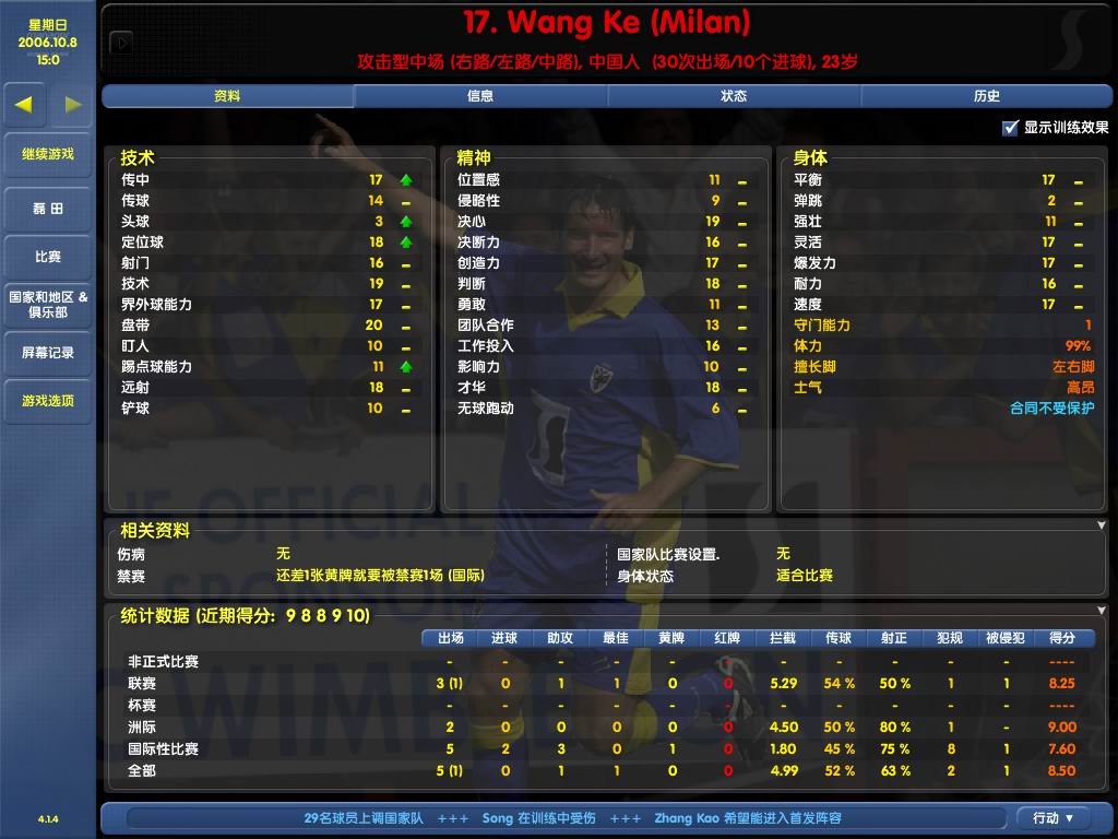 上场不多,我估计主要是在世界杯等国家队的比赛中露脸比较多的缘故,所以声望提升高~