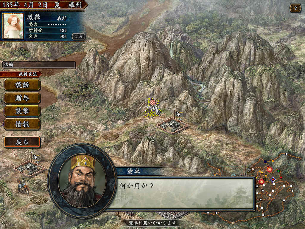 公元前184年黄巾起义;群雄逐鹿中原!俺依旧四处漂泊;一日路过华山;突然出现一个身高丈二;手提两把菜刀的大汉!口中说道:此路是俺开;此树是你栽;要想从此过;留下财宝来!俺一见心里像抹了蜜一样美滋滋的!赶忙一边掏出500金币一边说道:大哥!俺可找到组织了!收下小弟吧!大汉见俺这么乖巧,乐得两片豁子嘴不停地说:好好好!从此以后跟着大哥混吧!从此以后俺怀着满腔热血开始了俺的强盗生涯!