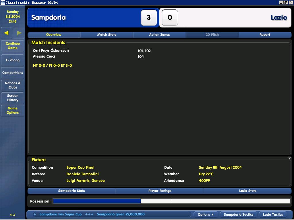 玩0304时,我连续3年在联赛杯决赛的第120分钟被进金球,自从有了这经历,无论什么时候的进球,我都不惊讶了