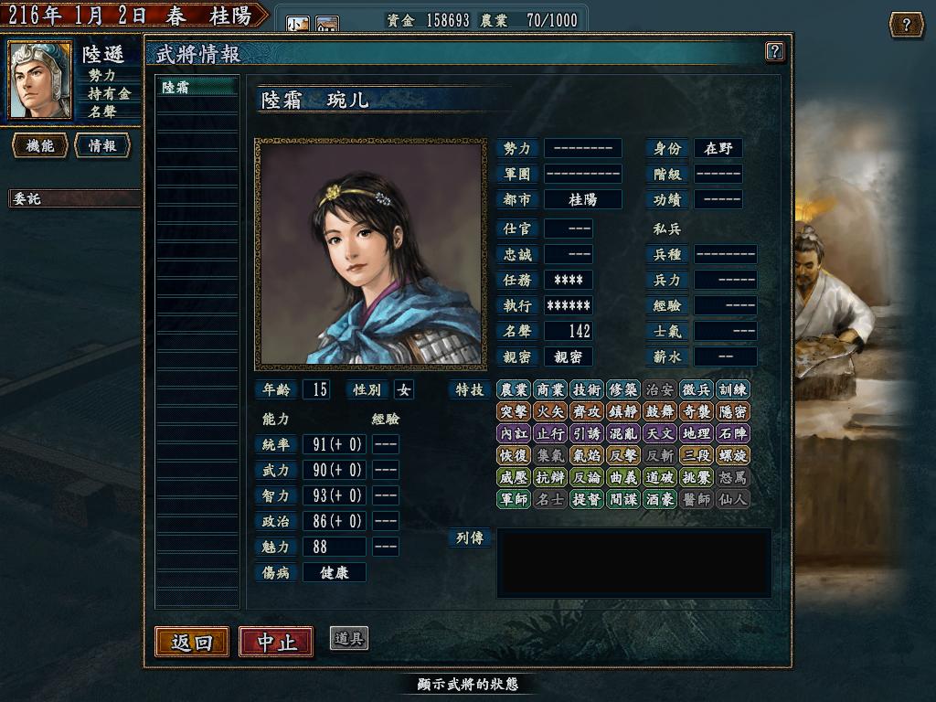 会41个技能的子女,很少见的,而且大部分都是白痴,各项能力初始值各位数,