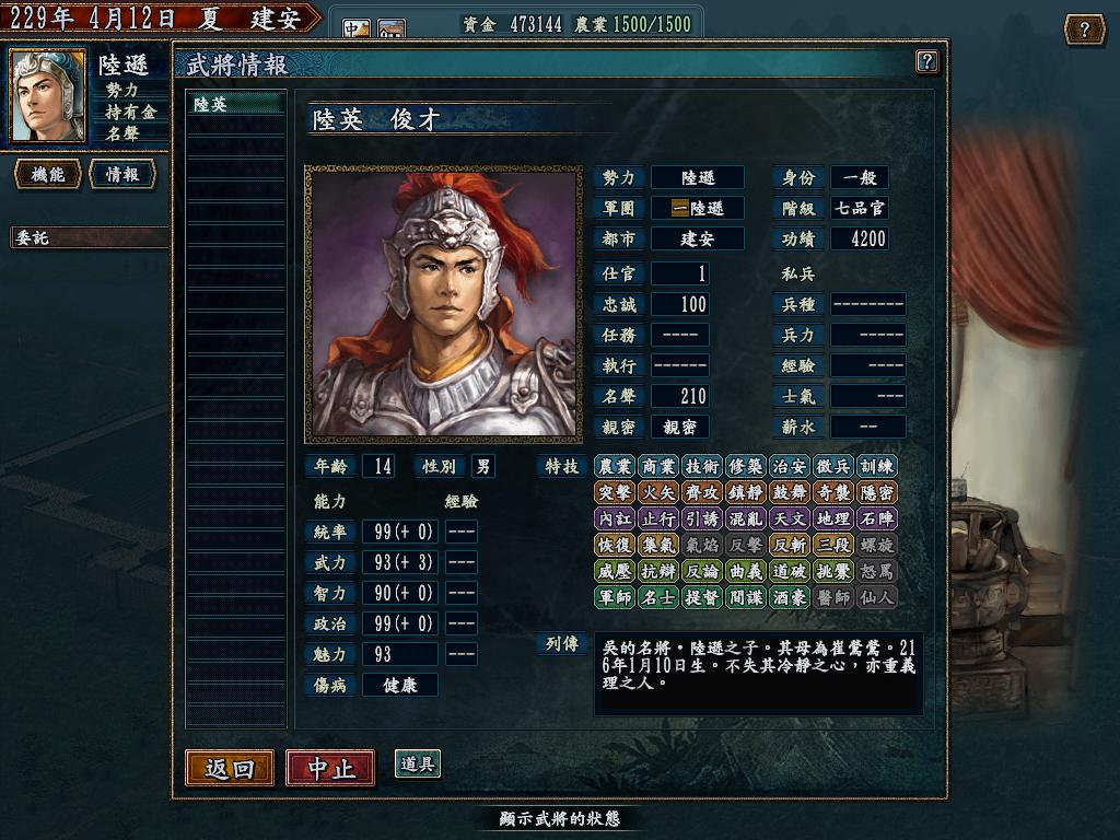会41个技能的子女,很少见的,而且大部分都是白痴,各项能力初始值各位数,