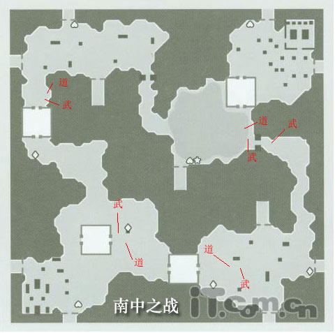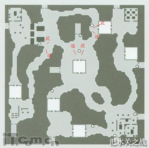 符号解释:武=武器,道=道具.后边几张图中的W=武器,I=道具.地图中倒心型表示回复型道具所在;菱形表示华佗膏所在;五星型表示新道具"觉醒印"的位置.PS:本图片系列为第一次初稿,如其中有何处遗漏或者偏差请读者看官们务必指正!谢谢!