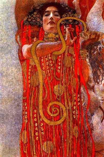 1897年为维也纳大学创作的壁画,是他风格的大转变。这组壁画按维也纳大学的3个系绘制,分别为《医学》、《法学》、 《哲学》。 画面利用象征手法, 描绘了人世的苦难相,带有消极厌世的灰暗色调,作品完成后遭到大学院士会的非难,被拒绝接受。在这个时期,克里木特和一部分激进的青年画家从古典主义把持的美术家协会中分离出来,被称为"维也纳分离派"。它和南欧的"新艺术运动"、德国的"青年风格"都倾向于追求装饰性和形式感,是促进欧洲工艺美术设计事业的重要力量。