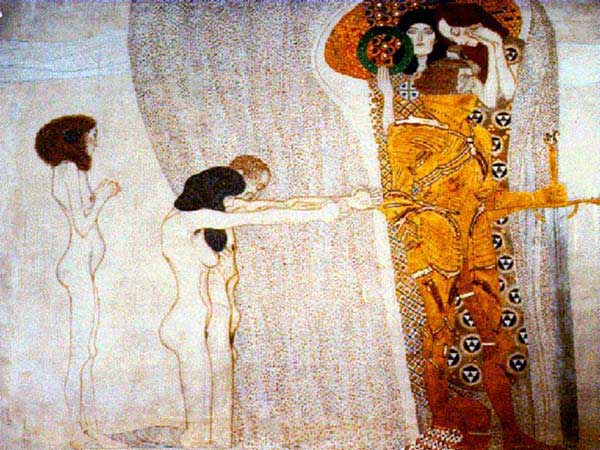1900年,克里木特把被维也纳大学退回的壁画在巴黎博览会展出,受到青年艺术家的热烈赞誉。从而奠定了他在奥地利画坛的领导地位。1902年,和雕塑家克林格尔一起承担贝多芬音乐厅的装饰工作,主雕像《贝多芬》由克林格尔完成,雕像背后的墙壁上,由克里木特创作了装饰性饰带《音乐》,十分成功。