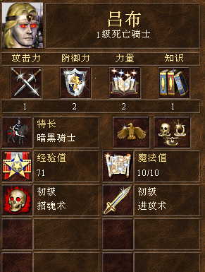 (死亡后转为死亡骑士,领导换成招魂,特长:黑骑士,其实就是邪恶的罗德哈特)