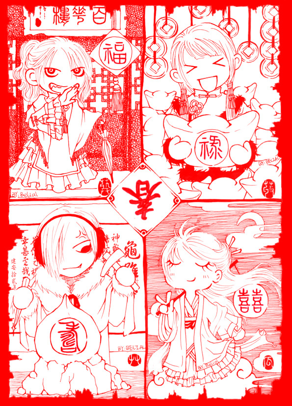 ~~~=W=福和喜是我画的,禄和寿是她画的.(广告时间:寿地方的龟虽寿还有当中的春字,是某琉写的诶>W<+++<--
