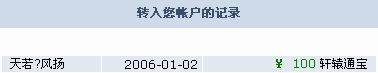 钱庄的用户名显示有问题!我给文刀的转帐记录显示为: