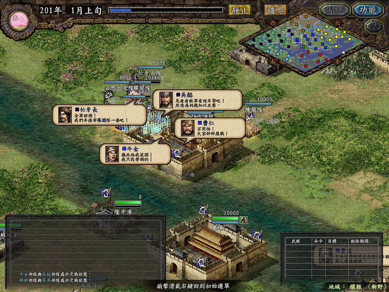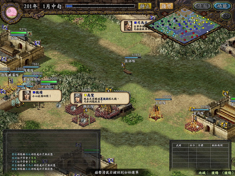 增加大小关隘几十处,所有设施提高恢复度,耐久度,除曹操外,其他城市内政全满
