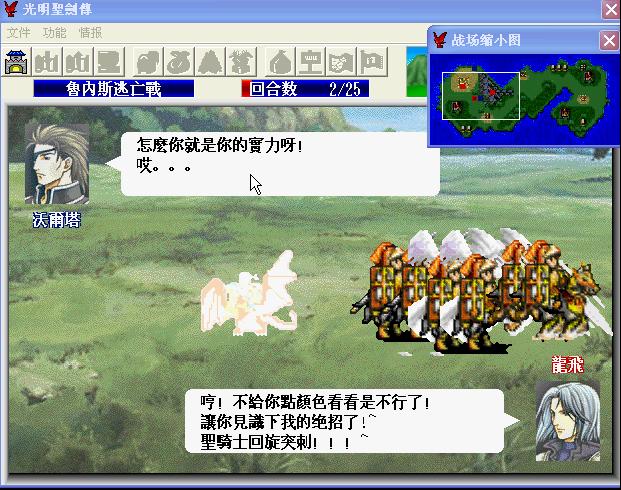 本游戏由火焰之纹章------圣魔之光石这游戏为素材的剧情改编.... 本人在游戏中扮演一位年轻的将军(龍飛) 希望大家喜欢我的作品.....能多多的支持我..或给我一些游戏的见意!
