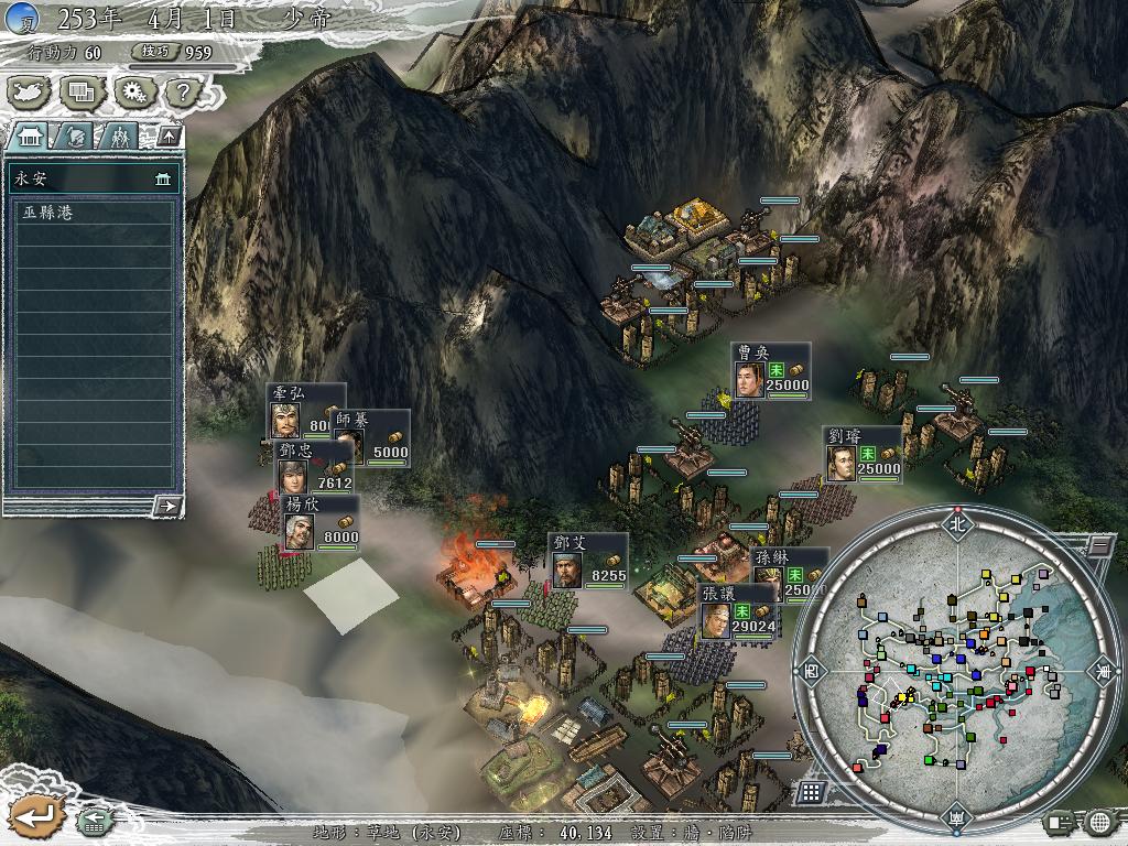 4、初始给少帝1w金,8w粮,10w兵,位处永安,和刘备交好,但没结盟(和大耳结盟要和诸葛论战的,派去的人直接被秒