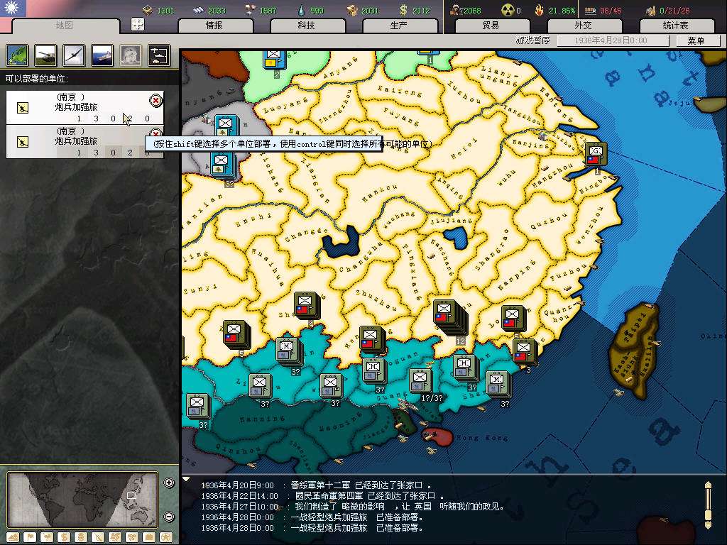 MIH出了新的0.5版本,是基于AOD平台的。照例还是选中国势力,这版红朝所有后门全被堵上,违背历史惩罚太大,要一直熬到皖nan才能独立发展,可玩性太差了,所以华丽地选了国府。统一中国前开吞科技组,小弟里还是有1、2个能用的科技组的,将来能开10洞了还是可以用到的。