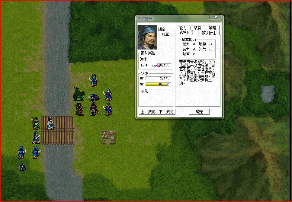 第一回合,施全加士气,余华龙双击+1暴击 牛皋暴击打无名拳师,哈哈,正好剩1血,友军回合,关胜杀之。