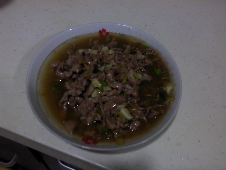 2. 在锅中放少许油并烧热后(如果肉比较肥也可不放油),下切好的肉片煸炒
