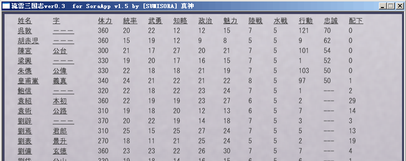出场能力 统17 武17 魅15 知19 政19 游戏设定最高能力值为30