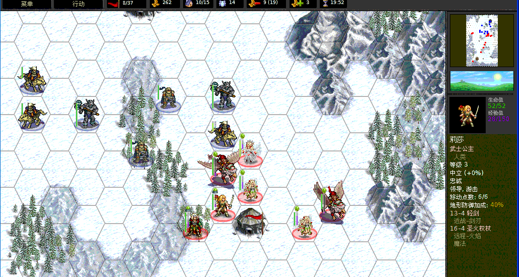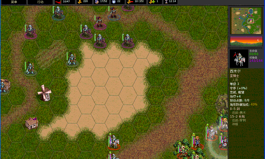 高阶骑士是HP最高、单次攻击杀伤力最大的兵种,两种攻击分别是:12×4的剑刃和17×2的穿刺(带冲锋特性)。看看这个数据就知道高阶骑士是多么的强悍。移动力7。