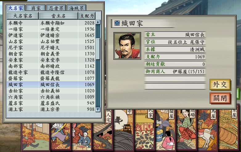 这个时候很多大名应该被灭,你就有大把时间挖人了, 浪人一抓一大把,挖吧挖吧,很快得“今周公”卡,等招了一大帮子人,让部下先修业后行商(你想学人家技能的别放出去),这时候你能学的技能基本满了。