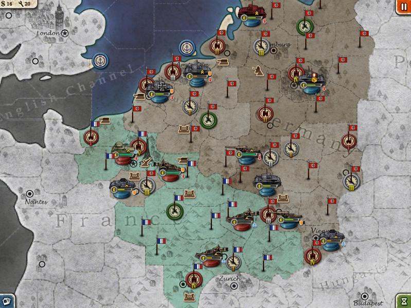 我军迂回作战的2个坦克师分兵,1个坦克师配合A集团军1个步兵师攻击退守南方的法军1个步兵师,1个坦克师配合我军指挥官坦克师歼灭法军巴黎外围的1个炮兵师