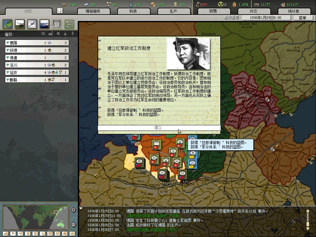 这时没急着搞野战炮,等图纸和3级科技组,人民战争理论过渡(期间工业部长换陆军编制研发型,情报部长换装甲兵研发型),完成后3级科技组出了就36野战炮,否则继续后方补给站过渡