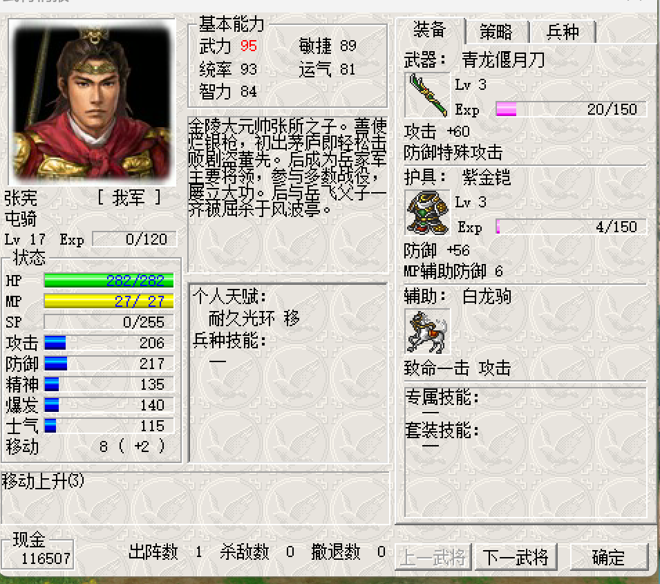 张显:学会麻痹攻击(郾城前)、雷线学会破甲30%-(救施全)