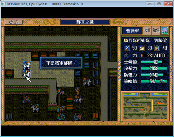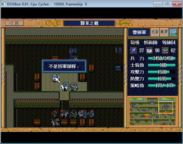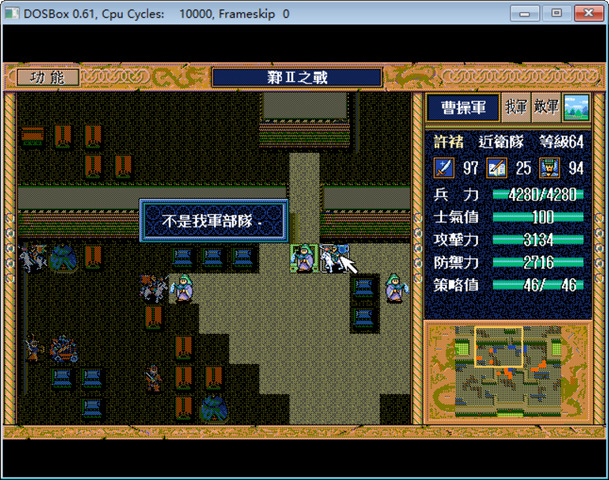 其实只要把异民族们拉上来,就能一回合击退曹真,但是考虑到拿许昌I的弓术书和剑术书,还是选择奇袭失败,只歼灭主将以外的敌军。