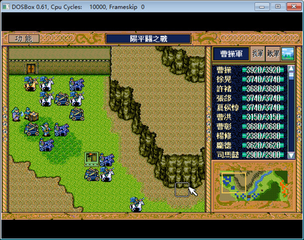 开场先尽量用血少的人把几个被动型敌军——2个骑兵、弓兵和运输队——依次引出来消灭,过程中不能挨着曹洪和曹休面前。