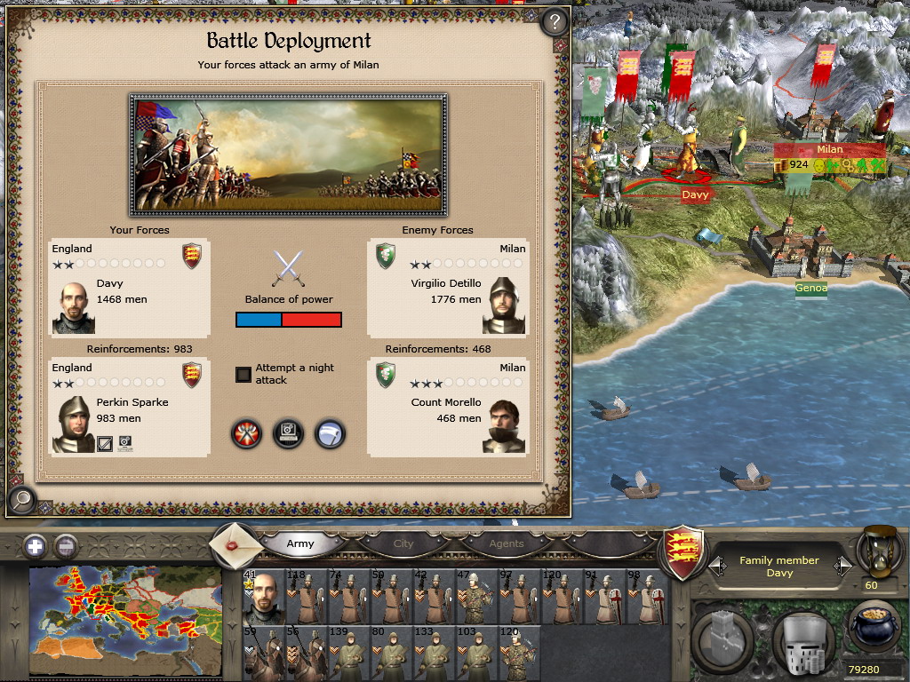 至于兵嘛,这种烂兵是不可能练成精兵的。初期手头十分拮据,而那种身无片甲的教徒一队有150人,却廉价到征募只需35块,穷的时候我不得不选这类士兵作战……