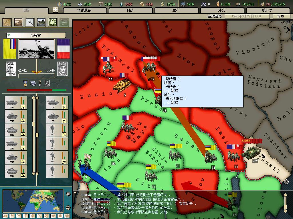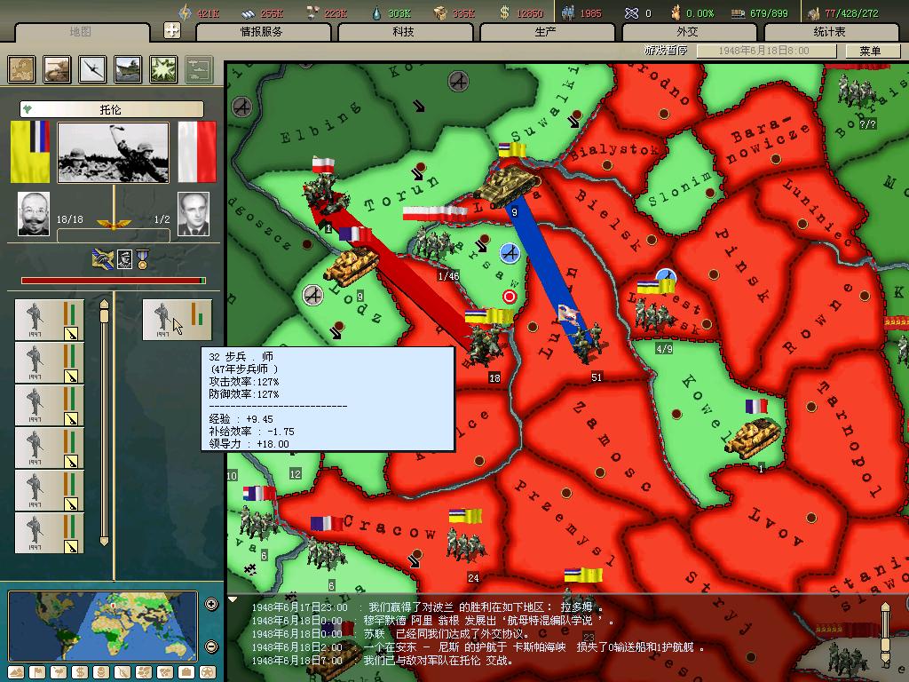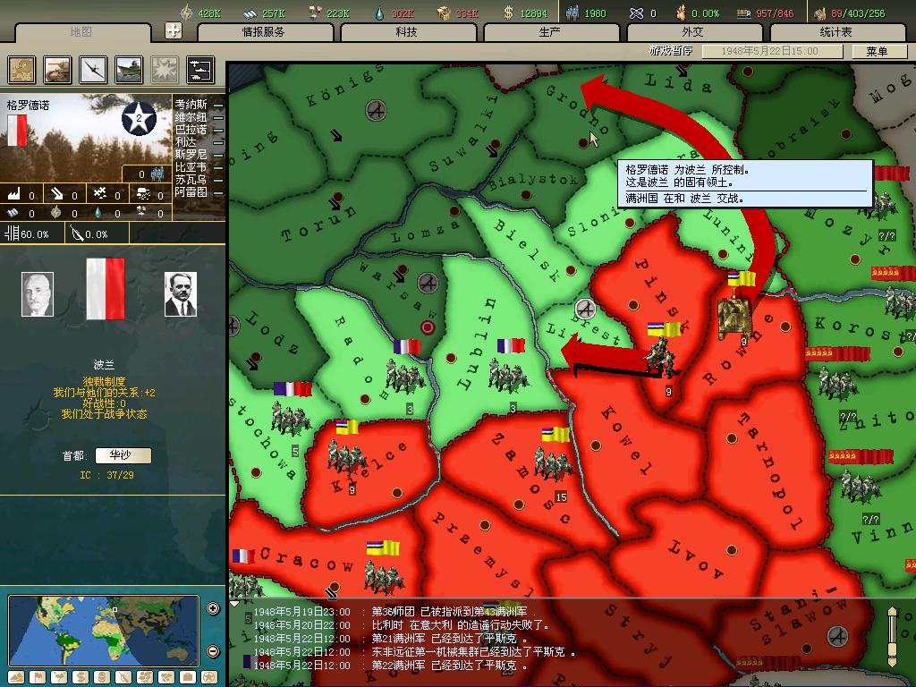 标题: DA1.3原版36满州国娱乐战报, 已更新至:1948年夏季 中日满轴心对抗英法美同盟 欧洲反攻势如破竹 攻陷华沙 吞并波兰!
