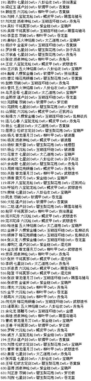 武将:杨幺、屈原公、杨凡、杨宾、杨钦、杨会、花普方、余尚文、余尚敬