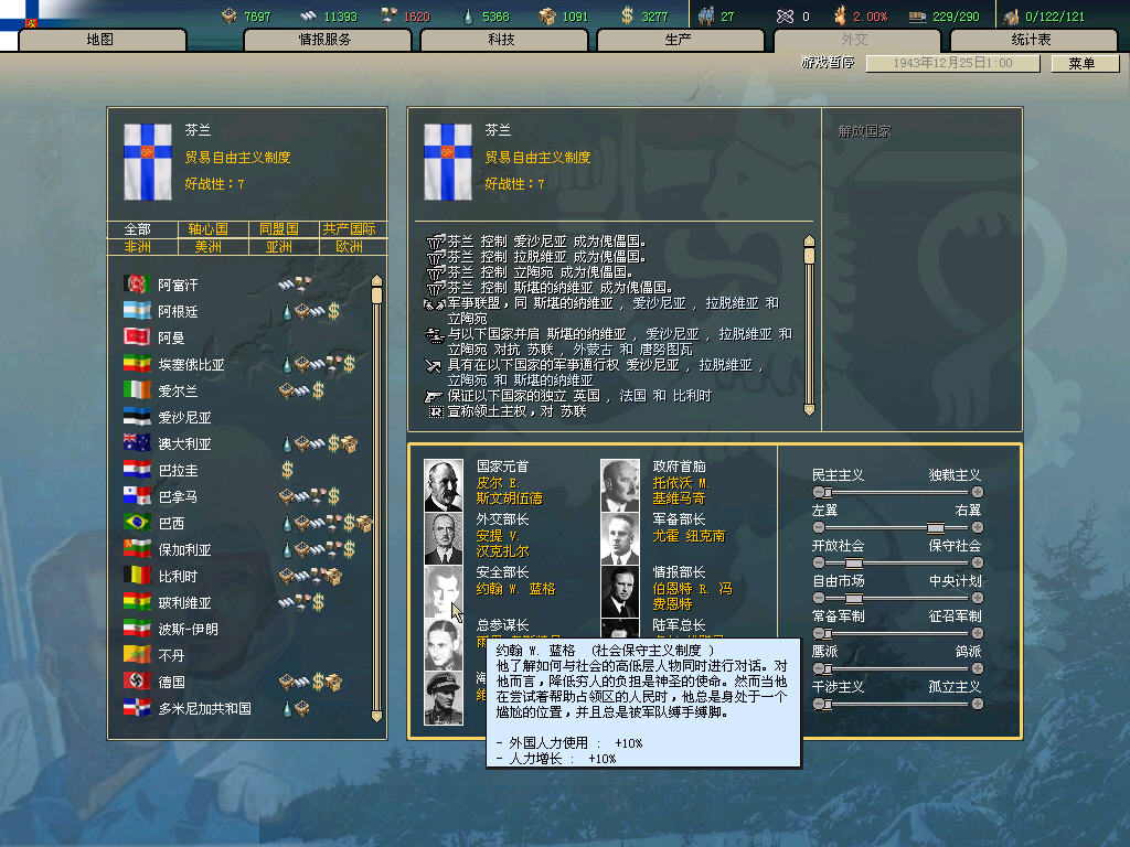 元旦拉一自由.换加5%IC的情报部长.(最终的内阁班子)