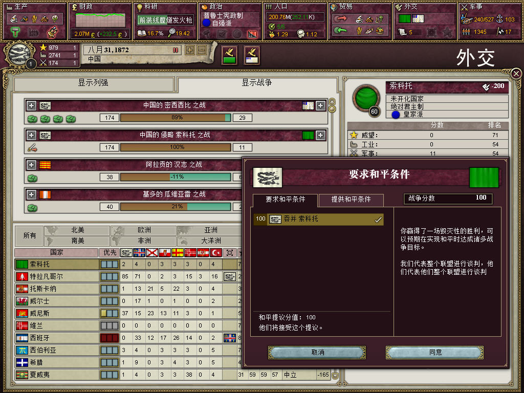宣战,索克托的兵不少,但是未开化国家的军事科技不行,打起来很容易